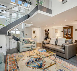 31' 5" x 22' (9.58m x 6.70m) Max. A Siematic fitted kitchen with black granite work surface, 1-1/2 bowl sink with mixer tap, electric fan oven, combination microwave with grill, built-in fridge, dishwasher and Neff washer/drier. Central island unit in Kashmir white granite and glass breakfast bar with built-in 5 ring Neff gas hob, extractor fan over and built-in freezer. Velux windows, down lights, chrome power points, TV aerial point, ‘Bose’ surround sound with cube speakers, ‘Ted Todd’ ‘Charnwood’ engineered oak lacquered flooring, down lights and anthracite radiators.