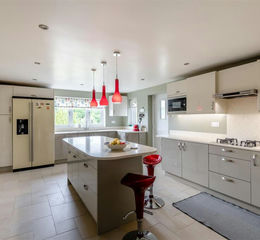 Kitchen/Breakfast Room - Excellent range of work surfaces finished in Corian with cupboards and drawers under. Island unit incorporating a breakfast bar and built in cupboards. Range of wall cupboards. Pantry. Fridge/freezer. Inset twin bowl sink unit with mixer tap. AEG 4-ring gas hob with extractor fan over. AEG microwave. Rangemaster oven. Built in Miele dishwasher. Tiled flooring with underfloor heating.