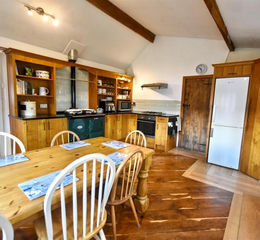 The current vendor has made upgrades to the heating and energy system, with an air source heat pump and privately owned solar panels. The layout briefly comprises of an open plan living room/diner with an inglenook fireplace housing a woodburning stove, vaulted ceiling with exposed beams and a mezzanine floor, a kitchen with feature range, side porch with boiler/store room and sun room. On the first floor there is a split level landing leading to the family shower room, a master bedroom with en-suite, two further double bedrooms and the mezzanine floor. The adjoining annexe consists of an open plan living area with kitchen, dining area, woodburning stove and also patio doors leading to the rear garden. The annexe also has a double bedroom with sun room, shower room, and a separate entrance hall, the bedroom has an interconnecting door to the main property's living area.