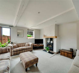The spacious sitting room offers French doors to the garden and a fireplace incorporating a cast iron wood burning stove.
