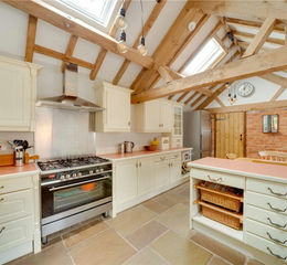 The superb 18ft breakfast kitchen lies at the end of the entrance hall, and boasts a wealth of exposed beams and twin skylights to allow plenty of light. There is a generous range of country style units with integrated appliances together with a range cooker and extractor hood over. A door from here leads through into the dining room/ snug with French doors to the front courtyard.