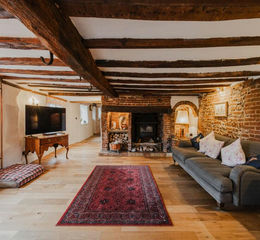 The kitchen’s confident design reflects the current owner’s long career as a professional chef and the decision to open it through to the adjoining snug, creating a wonderfully fluid living space. In the snug, the Tudor origins are even more apparent, with a deep inglenook fireplace and further exposed beams creating an atmosphere that is both cosy and steeped in history.