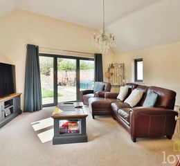A bright and spacious living room with double-glazed windows to both sides, bi-folding doors leading to the garden, and radiator.