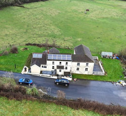 The farmhouse benefits from a large double storey L shaped extension providing excellent space for larger families with oil fired central heating together with solar thermal and PV's and back boiler to a large wood burner stove. Accommodation provides three large reception rooms and office, kitchen and downstairs bathroom, with the first floor providing four bedrooms and family bathroom.
