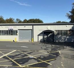 Industrial unit comprising a steel portal frame, with cladding to the external elevations incorporating Georgian wired glass windows and a pitched roof of insulated profile metal sheeting.