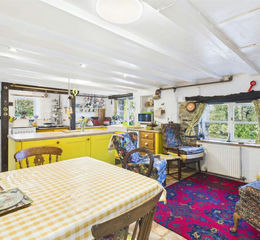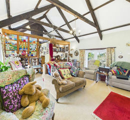 To the first floor, the property opens into an impressive vaulted lounge, featuring exposed beams and a wonderful sense of volume and light. Juliet balconies from both the lounge and the principal bedroom further enhance the feeling of connection with the surrounding gardens. The accommodation provides three bedrooms in total, together with two shower rooms, arranged to suit family living or those seeking a countryside retreat with space to host guests.