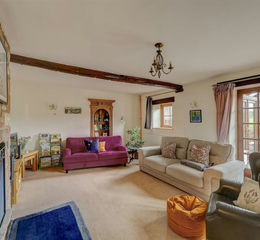 Dining Room - 6.32m x 3.45m (20'9" x 11'4") - The front door is accessed via the private driveway and welcomes you into the generously proportioned reception room. Currently utilised as a dining room with beautiful wooden flooring, this impressive space has many impressive features from the fireplace with stone surround to the exposed beams and three windows with deep wooden sills, filling the room with natural light. The room provides access to both the kitchen and lounge.