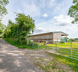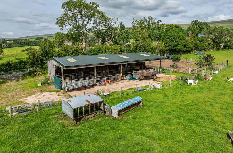 The field is accessed via double gates off the road that leads to the village allotments, and amounts to around 4.22 acres, including the area occupied by the building and yard area, and is sown to grass. It is serviced by mains fed water, as is the building, and also roof water is collected from the building. The land is stock proof fenced. The building is of timber frame construction measuring around 60’ x 30’ with a concrete floor, concrete feed passage to the front and a hardcore yard area. There is also an orchard containing plum, apple, nut and pear trees.