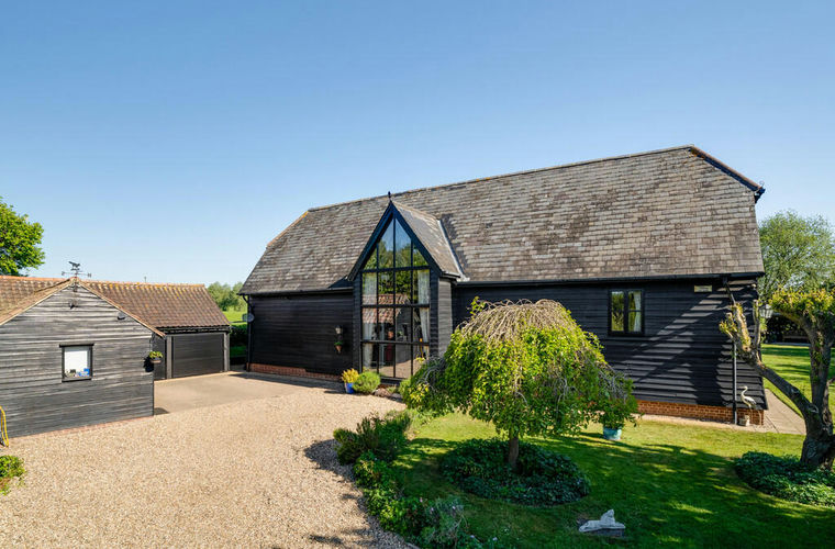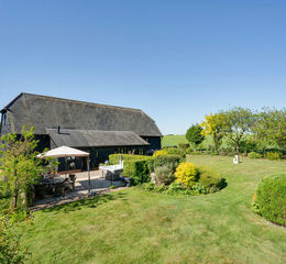 A stunning Grade II Listed barn conversion is situated in a quiet rural location backing onto open countryside. The property offers a unique open plan layout with impressive features including exposed oak frame, full height windows and galleried landing. All complemented by modern kitchen and stylish bathrooms. The property sits within large mature grounds, affording a great deal of privacy with double garage, studio/home office and workshop with the potential to convert into annexe accommodation (Subject to the necessary planning consent). Manicured lawns and orchard. In all about 0.5 of an acre.