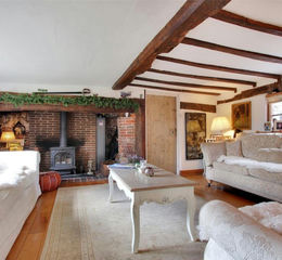 - The property retains many period features such as exposed wall and ceiling timbers, inglenook fireplace, wooden floors, and leaded light casement windows.