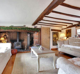 - The property retains many period features such as exposed wall and ceiling timbers, inglenook fireplace, wooden floors, and leaded light casement windows.