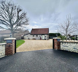 Gardens - There is a beautiful entrance onto the driveway laid to shingled stone, offering parking for at least 10 cars, there are two lawned areas, beautiful views over the neighbouring fields and farmland, a useful timber outbuilding and a lovely pergola feature.