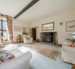 A former barn which has been thoughtfully extended and modernised over the last twenty years to offer a very comfortable family village house. From the hallway there is access to the library/TV room with an open fire and a triple aspect. There is a large dining room with floor to ceiling windows and French doors leading to the sitting room.