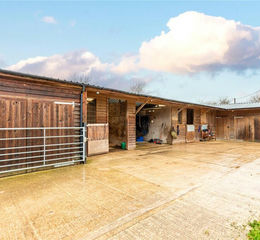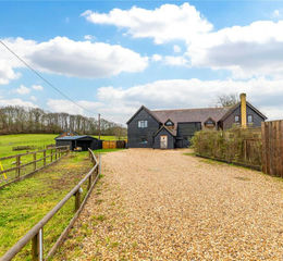 Deep within the rolling hills just five minutes from Kingsclere, this stunning 4 ACRE EQUESTRIAN ESTATE features a barn-style residence, three stables, and a floodlit professional menage, three/four double bedrooms (three with en-suites), KITCHEN / DINER and living room with log burner.