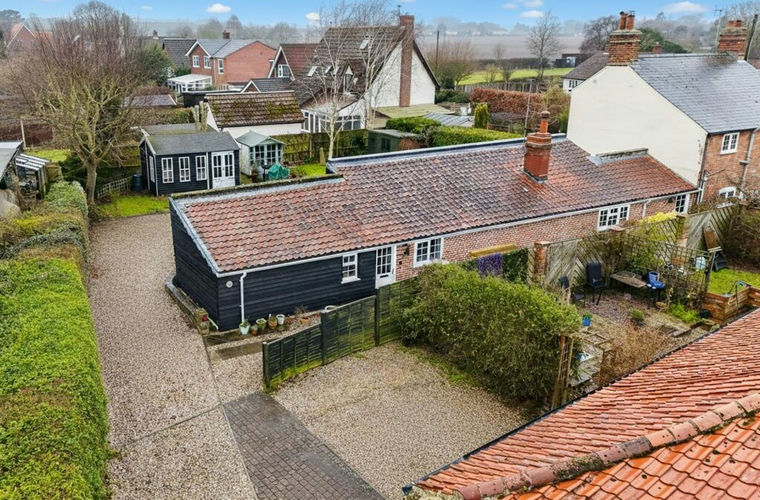 Tucked away behind a pair of barn conversions, a driveway leads to the private parking area which forms part of the rear garden. There is parking and turning space for several vehicles, and potential to install gates if required. The front of the property is tucked away and offers a functional footpath with easy to maintain borders which are also contained by timber panelled fencing.