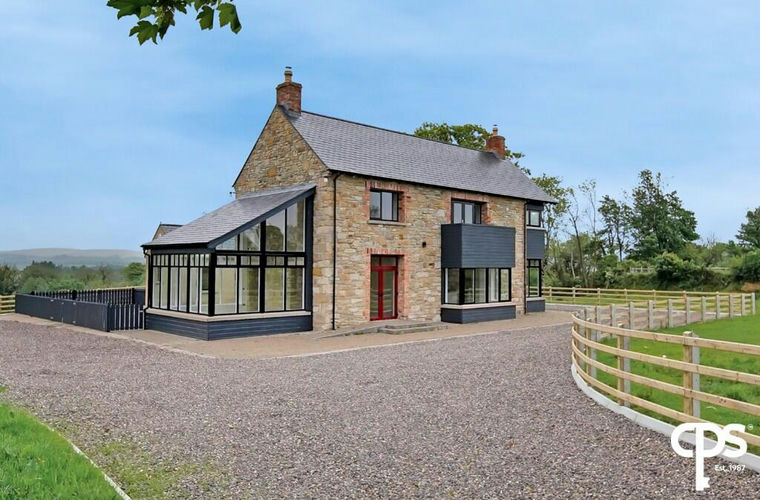 The entire site is situated on circa 1.9 Acres with a gravel area off the main road before access to a secure private driveway via electronic gates with decorative concrete pillars. There is a fenced boundary featuring a gravel driveway and cobble stone patio surrounding the perimeter of the dwelling. To the rear and side there is an enclosed patio area with fencing and feature cobble stones. To the front and left side of the dwelling; there is a large parcel of land circa 1.2 Acres. The property offers ample parking for multiple vehicles and provides views over the surrounding picturesque countryside.