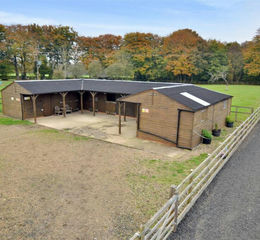 Bespoke ‘Prime stables' complex with new roofing and skylight panels. Top of the range specifications, including stable grill system, individual lighting and through ventilation front and rear. Rubber matting. Lighting installed below overhang. Water drainage connected to a separate soak away. Security floodlit lighting.