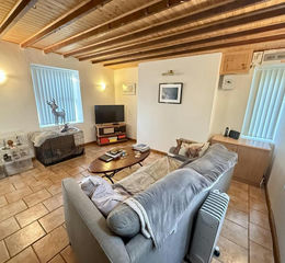 Living Room - 4.93m x 4.39m (16'2 x 14'5) - With tiled floor, beamed ceiling, double aspect windows