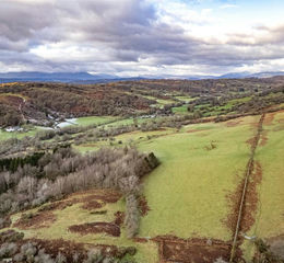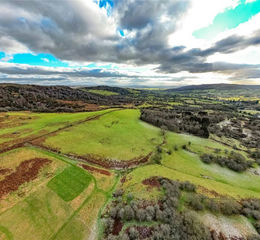 A ring-fenced block of productive upland meadow and grazing land offering a diverse and ecologically valuable landscape with scattered mature trees and shrub cover. The land is divided into three parcels, enclosed by a traditional combination of dry-stone walls and stock fencing. The land slopes gently upwards from the road entrance.