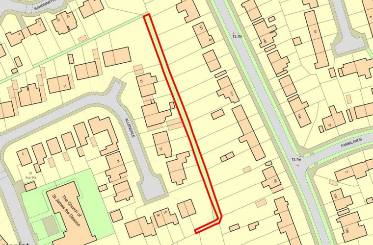 The land lies to the rear of residential properties which front Wains Road and Allendale respectively, in a residential area north of the Woodthorpe area of York.