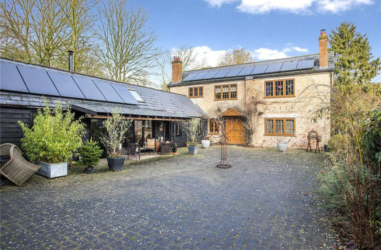 The first-floor is approached from an exposed timber staircase, has a semi-vaulted landing giving access through to the principal bedroom which is double-aspect and fitted with a wall-to-wall range of fitted wardrobes with shelves and hanging rails. Two further bedrooms, one overlooking the front courtyard and a smaller double-aspect one overlooking the paddock and rear garden. Completing this floor is a large family bathroom with wood panelling and exposed brickwork for character, fitted with a large double-ended rolltop bath, white WC, imaginatively designed basin from a former sewing machine stand, and a large walk-in multiple head shower, heated towel rail and radiator.