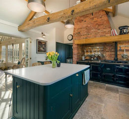 The Manor is entered through the formal porch into the inner hall with flagstone floors, with stairs leading up to the first floor and down to the Cellar. Off the hall there is a study/playroom with east facing aspect across the driveway enjoying a window seat, drawing room with stunning wood burning stove, window seats (and shutters), snug room with fitted cupboards, fireplace and wood burning stove. To the rear of the property there is a bespoke timber Orangery with limestone floor, pairs of French doors to the garden terrace and bi-fold doors to the kitchen. The kitchen has been fully refurbished and enjoys a vaulted ceiling, exposed beams with 6 Oven Gas/electric aga and double Belfast sink. There is also a useful utility room with separate cloakroom with w/c.