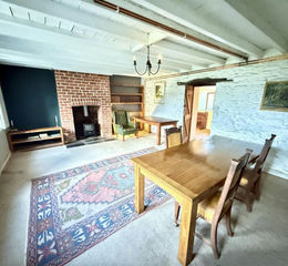 Living Room - 6.05m x 4.70m (19'10" x 15'5") - A characterful room having beamed ceiling, three front windows, exposed stone walling to one wall, feature cottage-style brick fireplace we are informed previously housing a wood burner, stone chimney breast on opposite wall.