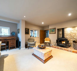 A door leads through to the double aspect sitting room with a large feature fireplace and log burner and French doors out to the garden.