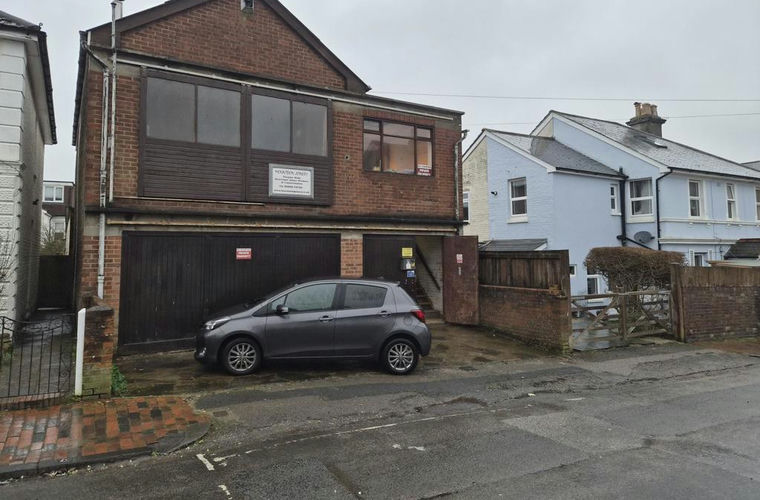 A detached commercial building of traditional brick work, arranged over two floors with rear extensions, covering the majority of the site. There is a useful driveway from the rear of the property leading out to St. James` Road.