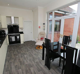 Having a good range of fitted base and eye level storage cupboards with complementary work surfaces having tiling to the splashback surrounds. There is a point for an electric cooker and a radiator.