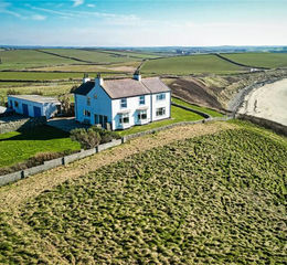 A recently modernised house occupying a spectacular location surrounded by its own land, having panoramic coastal views and private access onto the beach.
