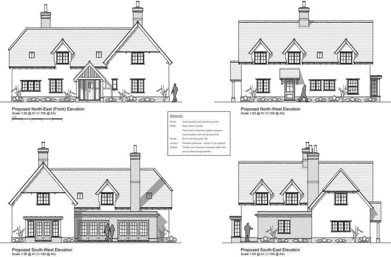 Planning Permissions have been approved for the erection of a 3,000 square foot detached house with double cart lodge sitting in a 0.35 acre plot with countryside views. The property currently situated on the site has approval to be removed and replaced with the new dwelling. The proposed dwelling enjoys an open plan Kitchen/Family/Dining Room with separate Sitting Room and Home Office and on the first floor there are 4 generous bedrooms including an impressive master suite with stunning views.