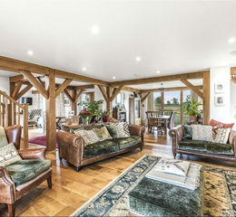 The farmhouse has been built by the current owners to an exceptional high standard. The property includes attractive oak joinery throughout with oak framed glazing and beams, giving character, warmth, light and wonderful views. The property enjoys modern fittings meaning the property has the best of both styles. The ground floor offers contemporary spacious open planned accommodation with bi-fold doors onto a veranda making the living space naturally light and airy. The first floor comprises four bedrooms all with charming countryside views. The accommodation is set out on the attached floor plans and briefly comprises;