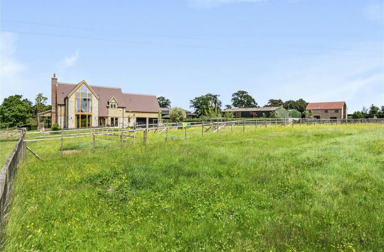 The farmhouse has been built by the current owners to an exceptional high standard. The property includes attractive oak joinery throughout with oak framed glazing and beams, giving character, warmth, light and wonderful views. The property enjoys modern fittings meaning the property has the best of both styles. The ground floor offers contemporary spacious open planned accommodation with bi-fold doors onto a veranda making the living space naturally light and airy. The first floor comprises four bedrooms all with charming countryside views.