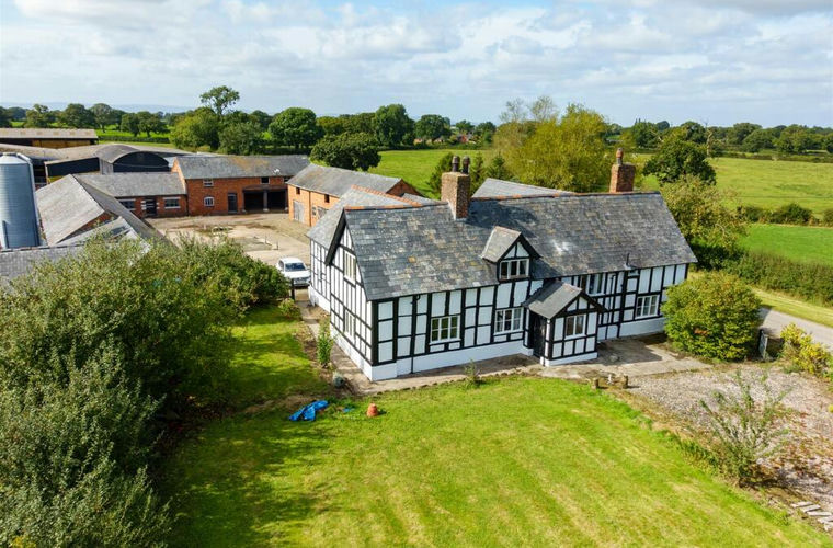 Formerly part of the Hanmer Estate, The Hully is a substantial “black and white” period farmhouse offering potential for comprehensive refurbishment, including a U-shaped cobbled courtyard of traditional brick-built farm buildings, alongside more modern farm buildings, situated within land and gardens which extend, in all, to approximately 2.58 acres, or thereabouts.