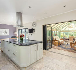 The handsome Victorian farmhouse comes with an attached cottage, currently run as a long term let; it could easily be integrated into the main house. At the heart of the farmhouse is the kitchen/breakfast room with its traditional pantry, electric Aga, island unit with breakfast bar, integrated appliances including a wine fridge and granite worktops; alongside is a well-fitted utility room, boot room and dog kennel with outdoor run. The kitchen/breakfast room is open plan to the large, east-south-west-facing conservatory with bifold doors that provide a degree of separation; both rooms have underfloor heating.