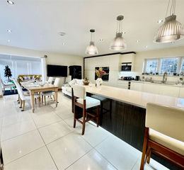 Kitchen-Diner - 6.93m x 5.18m (22'9 x 17'0) - Corian worktops with stainless steel under fitted twin bowl sink with mixer tap. Breakfast unit. Integral dishwasher. Integral fridge. Two ovens and two grills. Pull out pantry cupboard. Integral freezer. Plinth lighting. Wine cooler. Gas hob with extractor hood over. Tiled floor with underfloor heating. Bifold UPVC double glazed doors leading to large paved patio area.