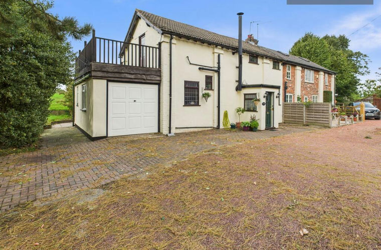 Situated in the serene countryside, this unique three-bedroom semi-detached house presents a blend of charming cottage style and barn conversion design. Boasting a sprawling plot of a quarter acre, this property offers stunning views without the burthen of an upward chain.