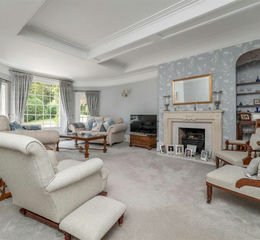 Drawing Room - 6.71m x 5.77m (22' x 18'11) - Overall measurements measured into the oval window bay, box sash windows, fireplace, picture rail, radiator, moulded ceiling cornice and panelled ceiling.