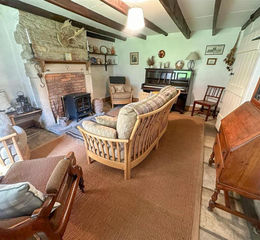 Returning to the inner hallway, stairs rise to the first floor where there are three bedrooms. The larger two bedrooms both have cast iron fireplaces with the largest bedroom having useful fitted wardrobes, a window to the side of the property and roof light. The second bedroom also has a roof light along with a low level window and exposed beams adding to the character and charm of the room. The third bedroom also benefits from useful fitted storage and roof light. The family bathroom is fully tiled with a mosaic border and comprises a bath, WC and wash hand basin along with useful storage cupboard.
