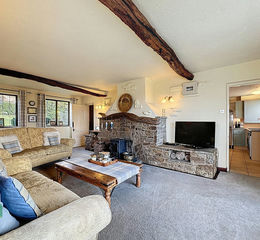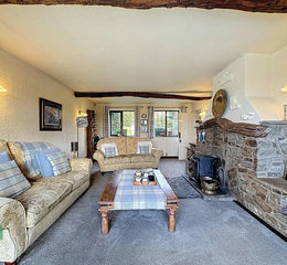 LOUNGE 23' 5" x 14' 0" (7.14m x 4.27m) Wood burner in stone fireplace, twisted beamed ceilings, 3 x PVC double glazed windows & bi folding doors, 2 x radiators, views of Darwen Tower