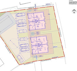 The site offers a shovel-ready residential development opportunity with full planning permission for the construction of four new dwellings, arranged as two pairs of semi-detached houses, together with an internal access road, private gardens, and dedicated parking.