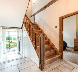 Beyond the formal garden are four mixed hedge-lined paddocks, with further space available to create additional paddocks to assist with grazing rotation. The land gently slopes and enjoys far-reaching views over surrounding fields and hills, and all of the grounds are enclosed by stock-proof fencing. A 40 x 20 metre manège has been fully prepared at groundwork stage and lies adjacent to the paddocks, with drainage in place to the stables. The manège surface, together with all equestrian fixtures, fittings and stable surfaces, are to be finalised and financed by the purchaser. This area is screened from the main house and connects conveniently to the stabling and barn.