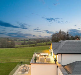 Light-filled and supremely spacious, step up and see the countryside unfurl ahead as wide,glazed double doors open directly onto an expansive private balcony, measuring approximately 8 metres by 4 metres and wrapped in seamless glass balustrading. With views unbroken, sense the feeling of floating above the countryside from this peaceful and immersive vantage point, with views out over the woodland and paddock, and beyond, towards the Derbyshire hills.