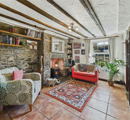 The property is full of charm, showcasing exposed wooden beams, deep-set windows and impressive fireplaces throughout. The main sitting room centres around a striking inglenook fireplace with exposed stone surround, while a second reception room, also with a character fireplace, provides flexible additional living space.