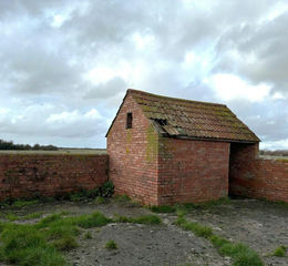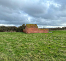 There is a small red brick building under a clay tile roof with a concrete floor and yard area. There are also two ponds situated on the property, and a small copse between the two parcels.