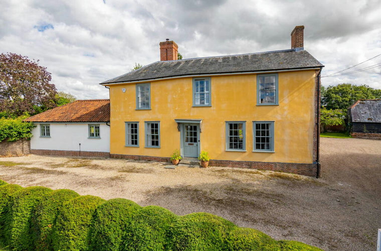 This exceptional six-bedroom, four-bathroom farmhouse is nestled in the scenic countryside just beyond the historic village of Lavenham. Boasting breathtaking rural views, this beautifully presented home is full of charm and character. The picturesque grounds include a walled garden with a heated swimming pool, a barn, a tennis court, dedicated office space, and paddocks complete with stabling.