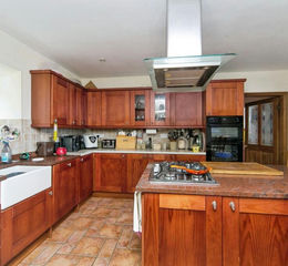 The property is approached via a private drive off of a shared track. The property its self has a welcoming porch, which opens into a central hallway. To one side lies a cosy lounge with a log burner set on a slate hearth, while to the other, a walk-through dining room with tiled flooring and a characterful open fireplace provides the perfect setting for family meals and entertaining.