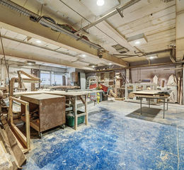The ground floor accommodation consists of two workshops, each benefiting from roller shutter access. The first floor comprises four offices, two kitchens, a canteen/bar area, bathroom, and WCs.