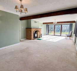 Living Room - 9.90 x 4.80 - Spanning a generous area, the living room offers a bright and welcoming space with good-sized windows that flood the room with natural light. It features exposed wooden beams and a brick fireplace with wood-burner that adds a cosy, traditional touch, perfectly blending character with comfort. The room opens out to the garden, creating a seamless flow between indoor and outdoor living.